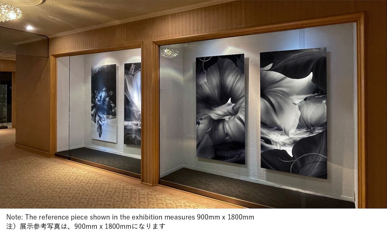 背景のマチエールはモノクロでありながら、こぼれるような光の中で、花そのものが発光しているかのようにも感じられます。本作は、このシリーズの中でも特に人気の高い一枚です。