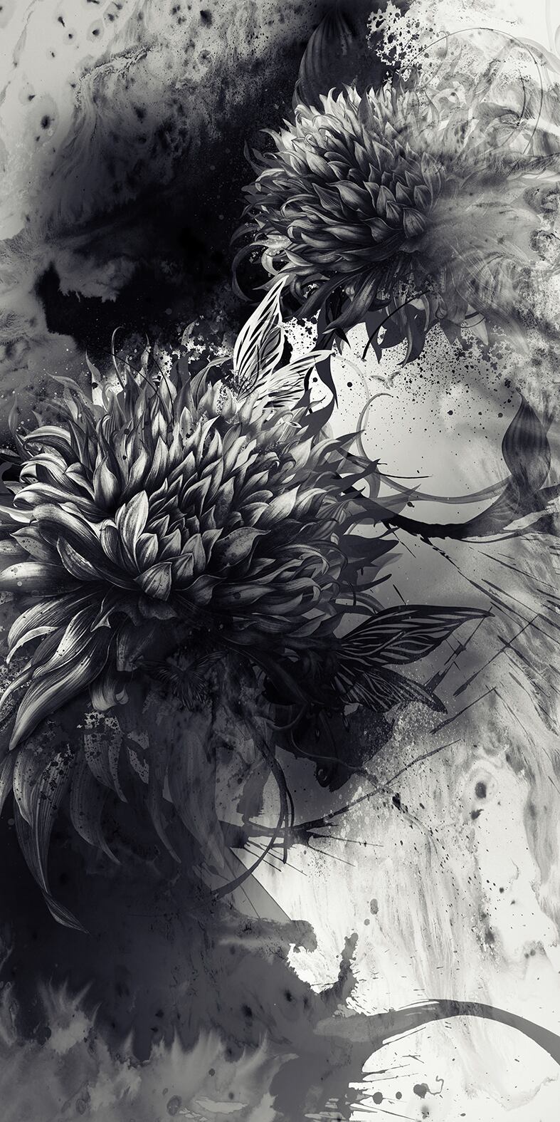 繊細さの中に秘めた力強さをもち、本来「静」である花が、まるで意思をもった生き物のように動きをまとい、宇宙空間を感じさせる不思議な一枚です。